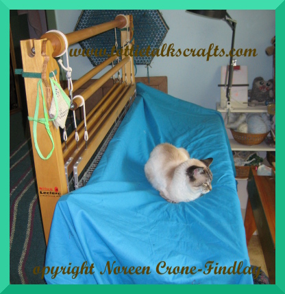 So, last week, when a loom suddenly appeared in the studio, without her fore-knowledge (I forgot to warn Ms Kitty that I had indulged myself and adopted a rather large loom- oops) she assumed that I must have brought it home for her!