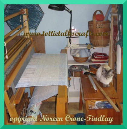 Ms Kitty refused to stay off the weaving…. so, I had to cover the baby blanket and the warp with cloths and hope for the best. Silly old cat!