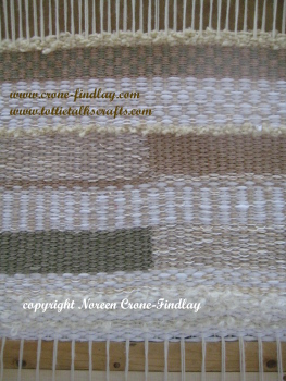 I am working on a new freeform weaving jacket that is all in creams, whites and naturals. This is the first sleeve.