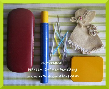 – At least 5 or 6 blunt tapestry or craft or darning needles and a needlebook or tin, or cardboard tube or eyeglass case to store them in.