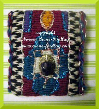 I wove these Pouches in Bonbon cottons, with Metallic chain stitch embroidery: