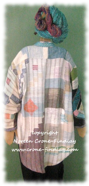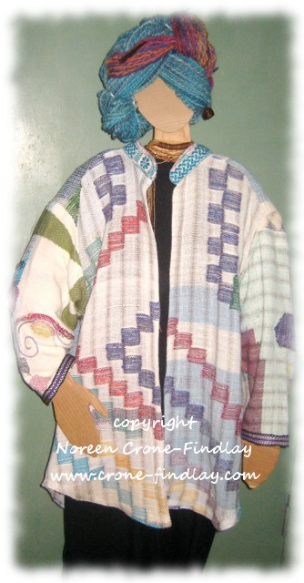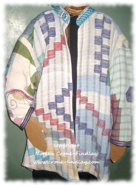 I did all kinds of clasped weft and inlay on body of the shirt.