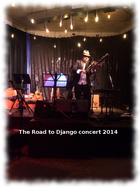 This video is the group of 12 musicians (Jim is the gorgeous greybeard in black hat and jacket with the Godin guitar on the far left of the stage) playing one of Jim’s compositions, “I See”, at the Road to Django concert on Jan 26 2014. Cam and Jim have given me permission to upload this piece to YouTube. Because it’s taken with my tiny old video camera, it doesn’t do justice to the magnificence of the music and the astonishing virtuosity of 12 gifted, beautiful musicians, but I really wanted to share even this small glimpse of the glory of the concert.