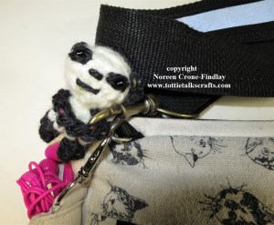 A dear friend came for tea today and fell madly in love with the Panda, and she was thrilled when I gave the prototype to her. It immediately jumped onto the clasp on her bag: