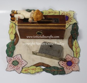 She insisted that the lovely round brass keyhole had to become part of her tatting shuttle.