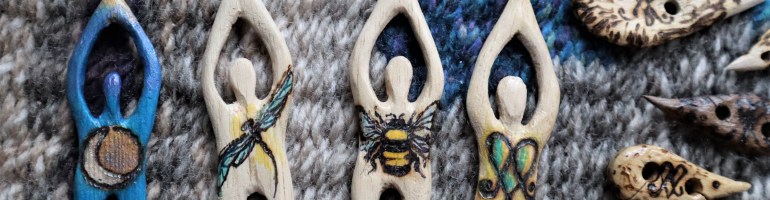 I have been busy in the woodworking room again… carving more Goddess and Hedgehog tatting shuttles.