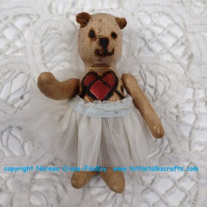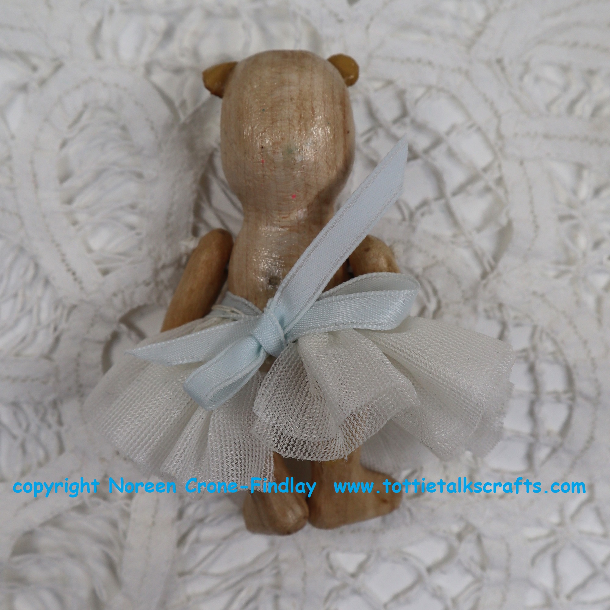 2a- 4 inch tall Hand Carved Wooden Teddy Bear in a Tutu (the tutu is included in the price) $95