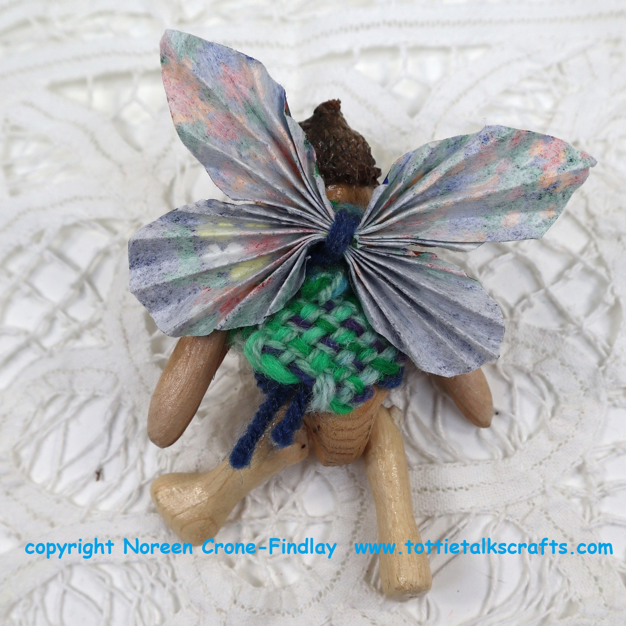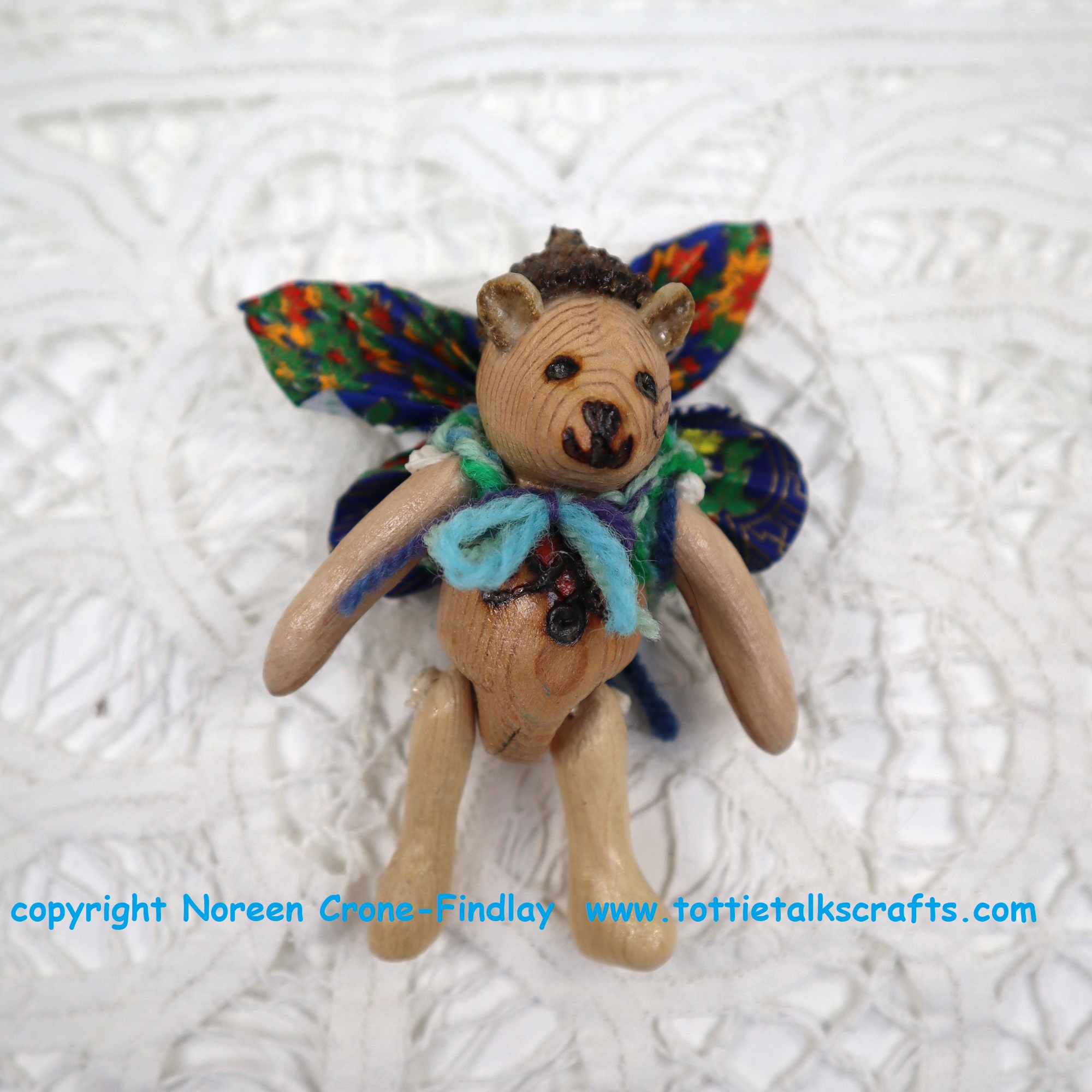 3a- 4 inch tall Hand Carved Wooden Teddy Bear with an Acorn Hat in a Vest with removable wings (the hat is glued to the Teddy Bear’s head. The vest and wings are included in the price) $95