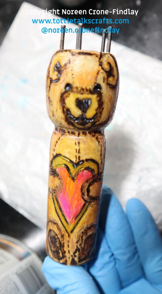 I immediately drew, then burned and painted this ‘BooBoo Bear’ and took this pic and sent it to him.