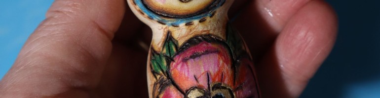 I immediately grabbed one of the spool knitters that my brother Jonathan (@distinctivewoodworking) and his son, Kieran turned for me, and I drew the sweetest little face that I could summon, and a flower, and for good luck, a Lady Bug, too.