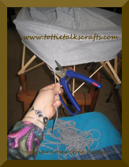 I rescued a warp chain that an angry weaver had cut from the loom and tossed in a box at the Reuse center: