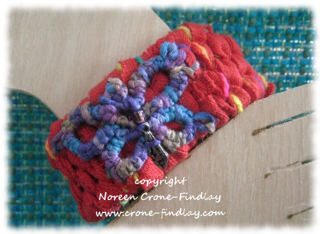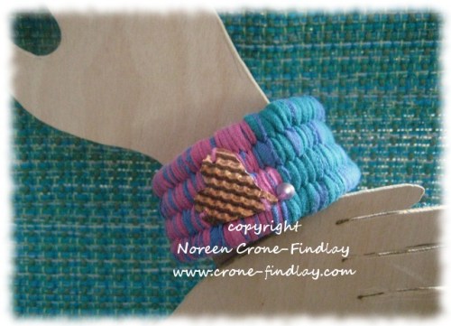 I wove 7 banners ( each 5 yards long) from cut up clothing and t shirts cut into t shirt yarn (tarn and ‘Farn’- fabric strip yarn) on my Saori loom.